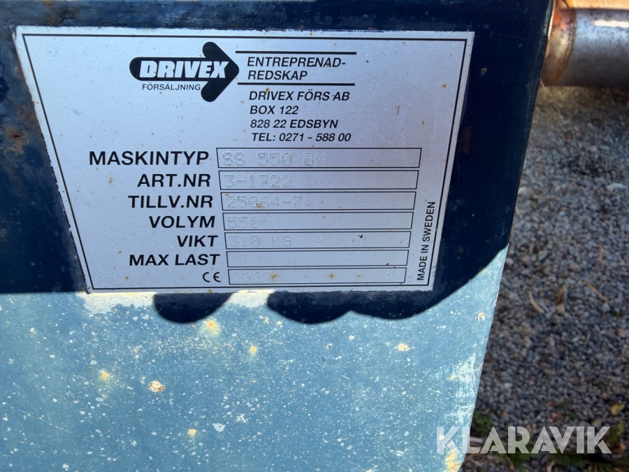 Boka frakt? Det finns ingen specifik information om frakt för just det här objektet, men om du skickar oss en förfrågan via vårt fraktformulär, så undersöker vi möjligheten. Paket, EU-pall eller större maskin? Klaravik har fraktavtal med Schenker och i de fall vi kan hjälpa till med frakt gäller det objekt som ryms i paket eller inom en EU-pall (upp till 120*80 cm och 990 kg). Det går att beställa frakt inom Sverige, dock inte till utlandet. Vid frakt på större maskiner rekommenderar vi gärna transportföretag som du kan kontakta.