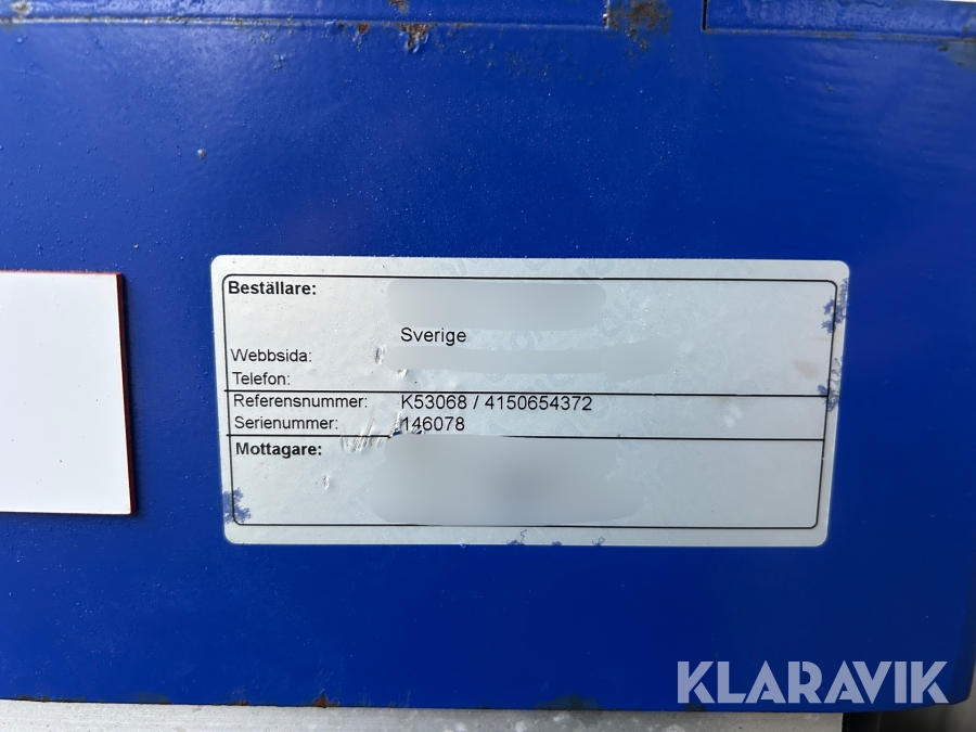 Boka frakt? Det finns ingen specifik information om frakt för just det här objektet, men om du skickar oss en förfrågan via vårt fraktformulär, så undersöker vi möjligheten. Paket, EU-pall eller större maskin? Klaravik har fraktavtal med Schenker och i de fall vi kan hjälpa till med frakt gäller det objekt som ryms i paket eller inom en EU-pall (upp till 120*80 cm och 990 kg). Det går att beställa frakt inom Sverige, dock inte till utlandet. Vid frakt på större maskiner rekommenderar vi gärna transportföretag som du kan kontakta.