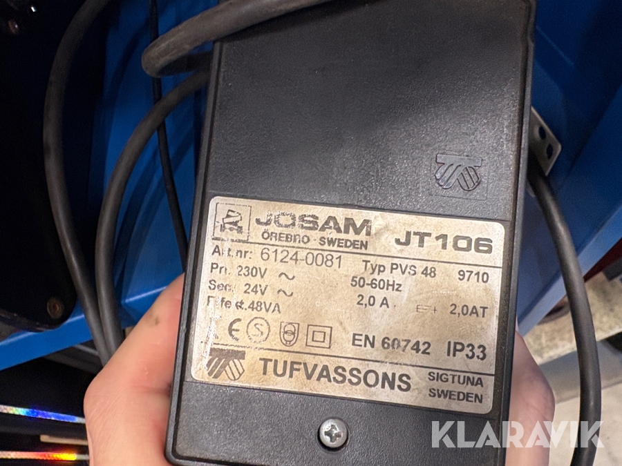 Boka frakt? Det finns ingen specifik information om frakt för just det här objektet, men om du skickar oss en förfrågan via vårt fraktformulär, så undersöker vi möjligheten. Paket, EU-pall eller större maskin? Klaravik har fraktavtal med Schenker och i de fall vi kan hjälpa till med frakt gäller det objekt som ryms i paket eller inom en EU-pall (upp till 120*80 cm och 990 kg). Det går att beställa frakt inom Sverige, dock inte till utlandet. Vid frakt på större maskiner rekommenderar vi gärna transportföretag som du kan kontakta.