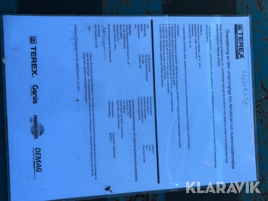 Läs om metodikenPga platsbrist är det viktigt att du som köpare hämtar inom 12 dagar från auktionsavslut. Vid frågor om frakt kontakta trade@ramirent.se.