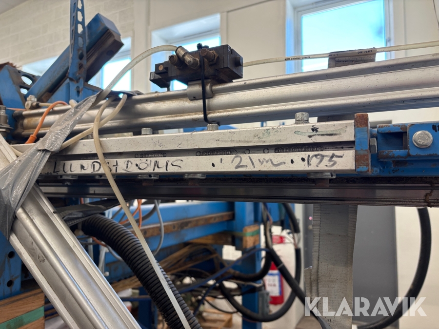 Luckmaskin Randek Bautech för tillverkning av råspontluckor. Luftdriven