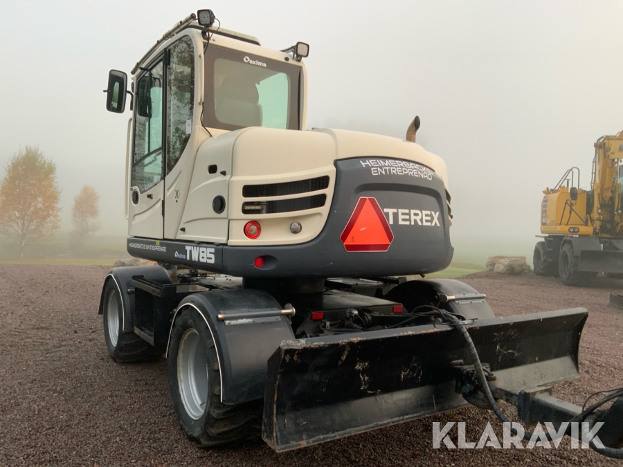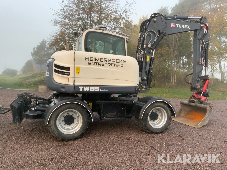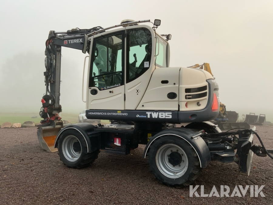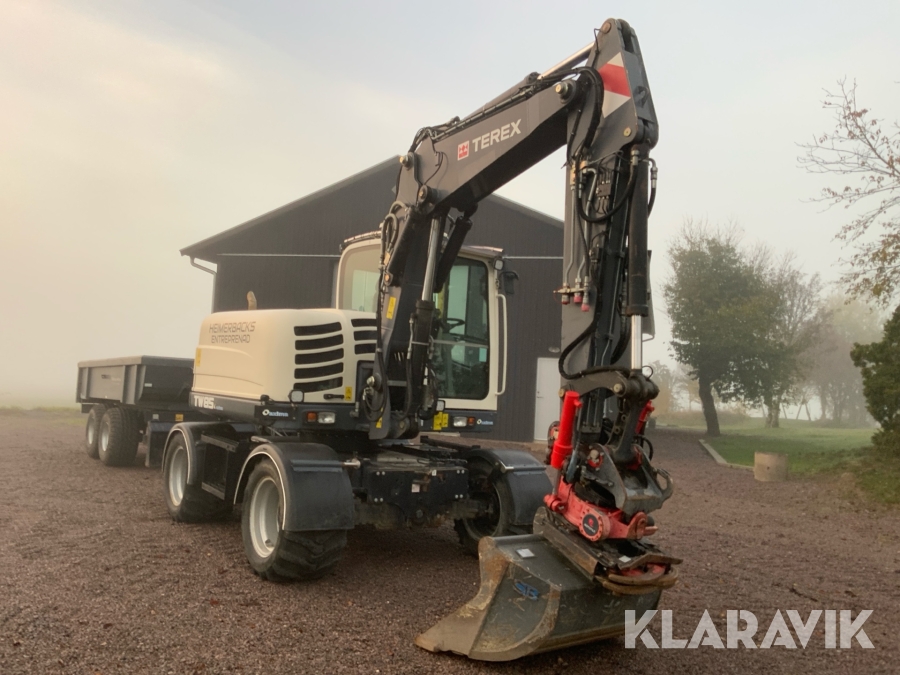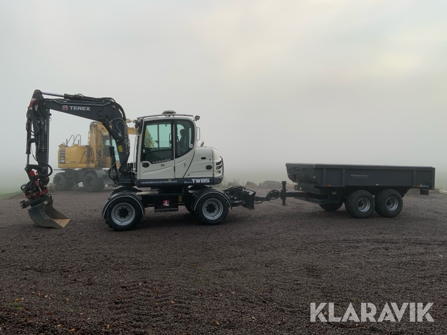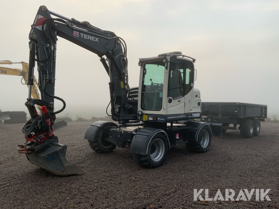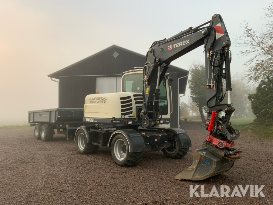 Grävmaskin Terex TW85 med kärra och flera redskap