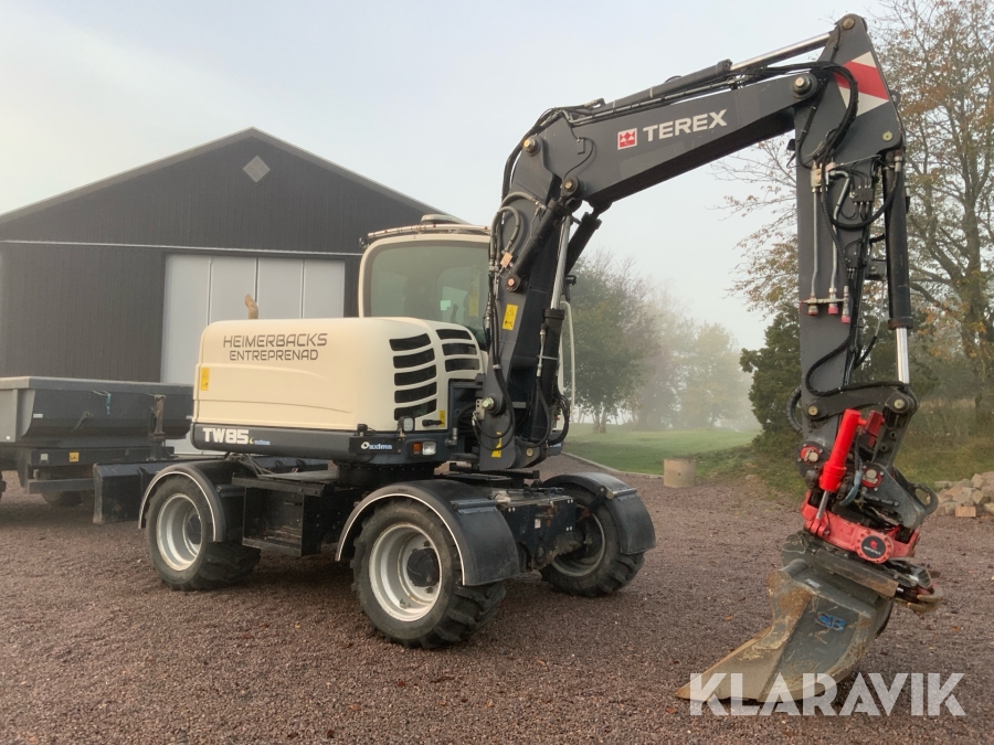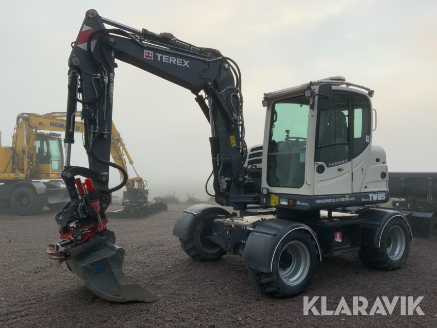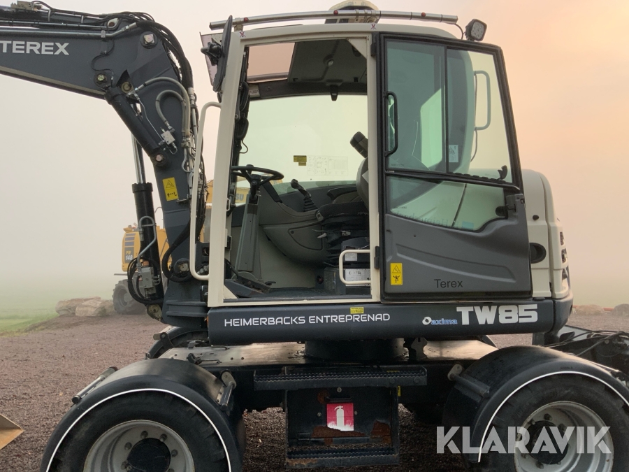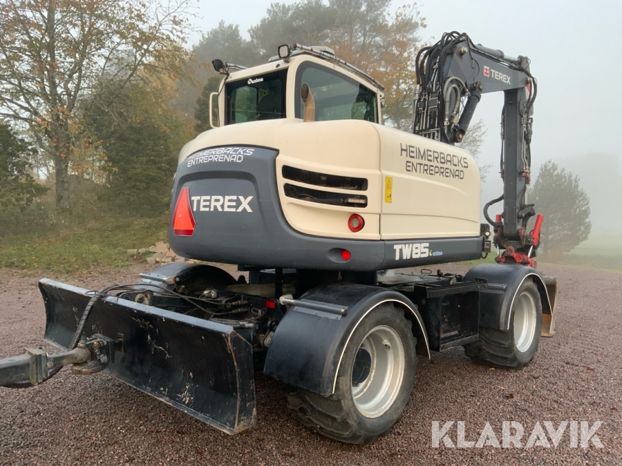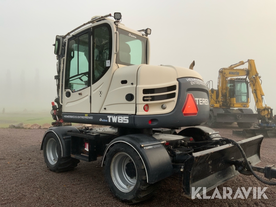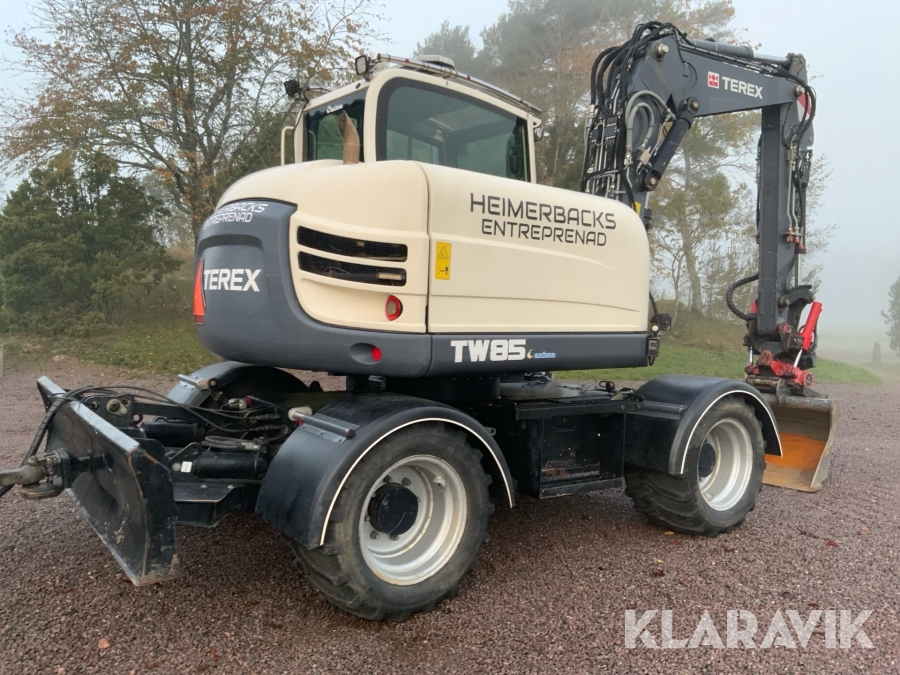 Grävmaskin Terex TW85 med kärra och flera redskap