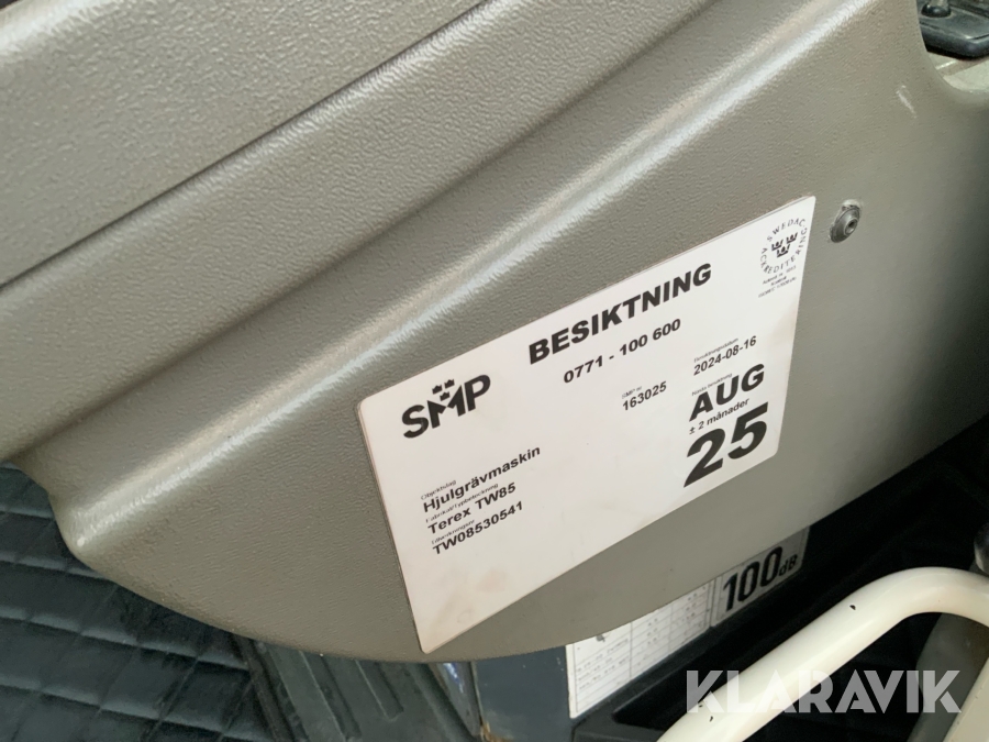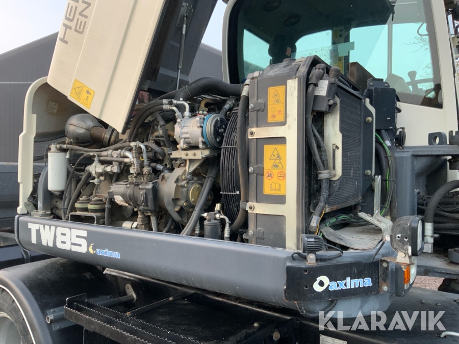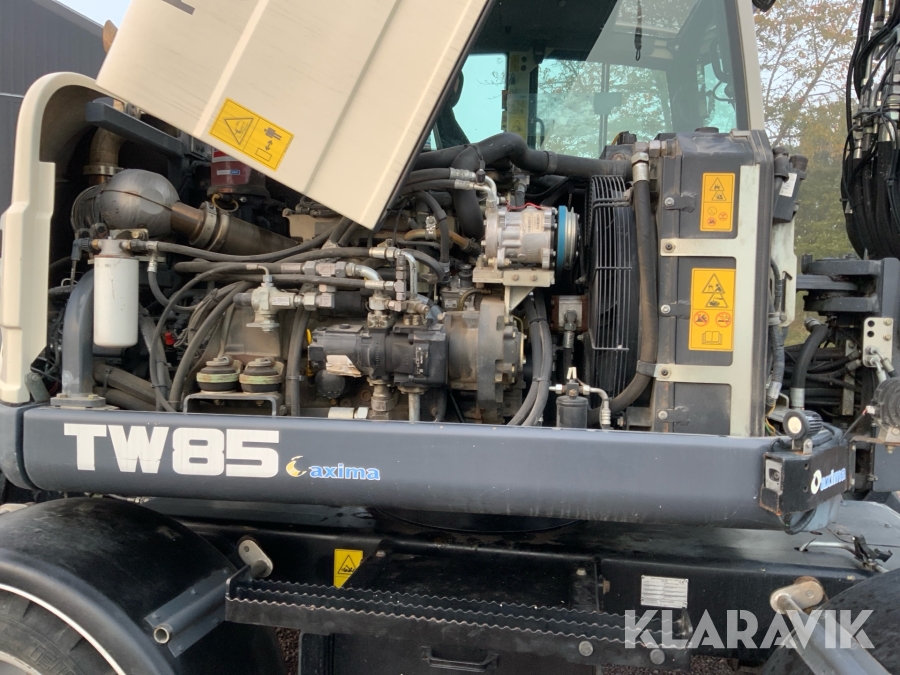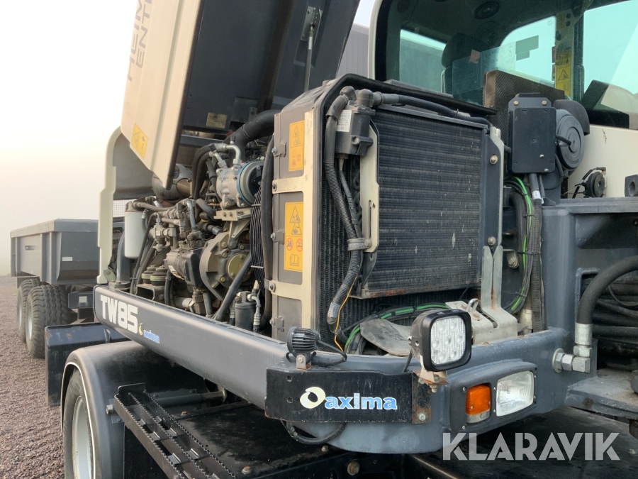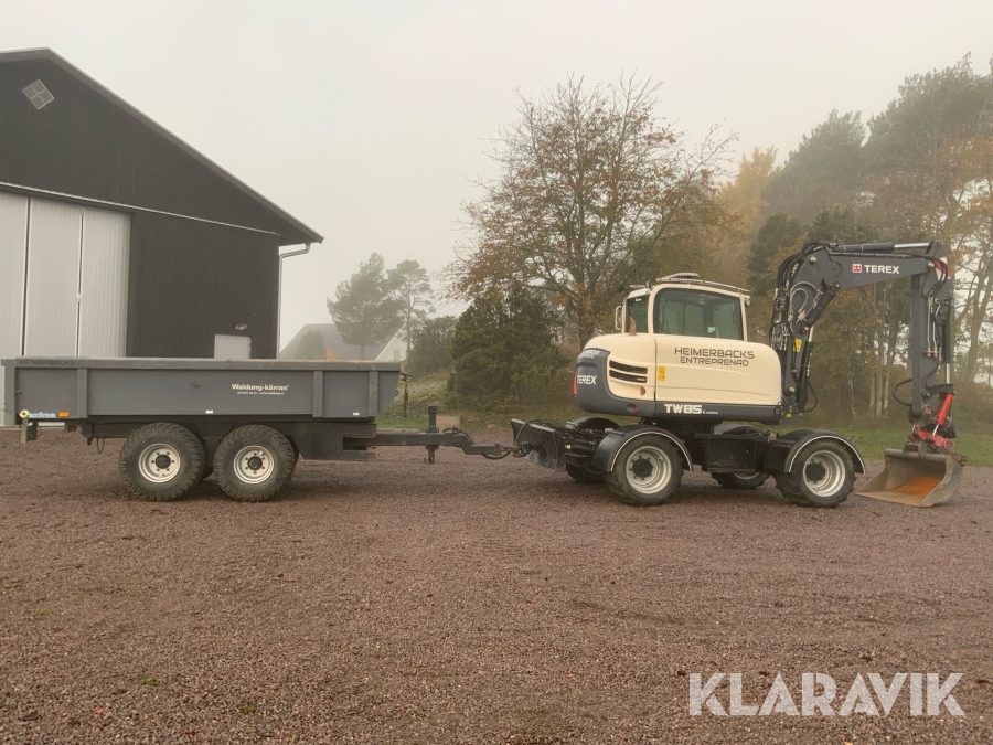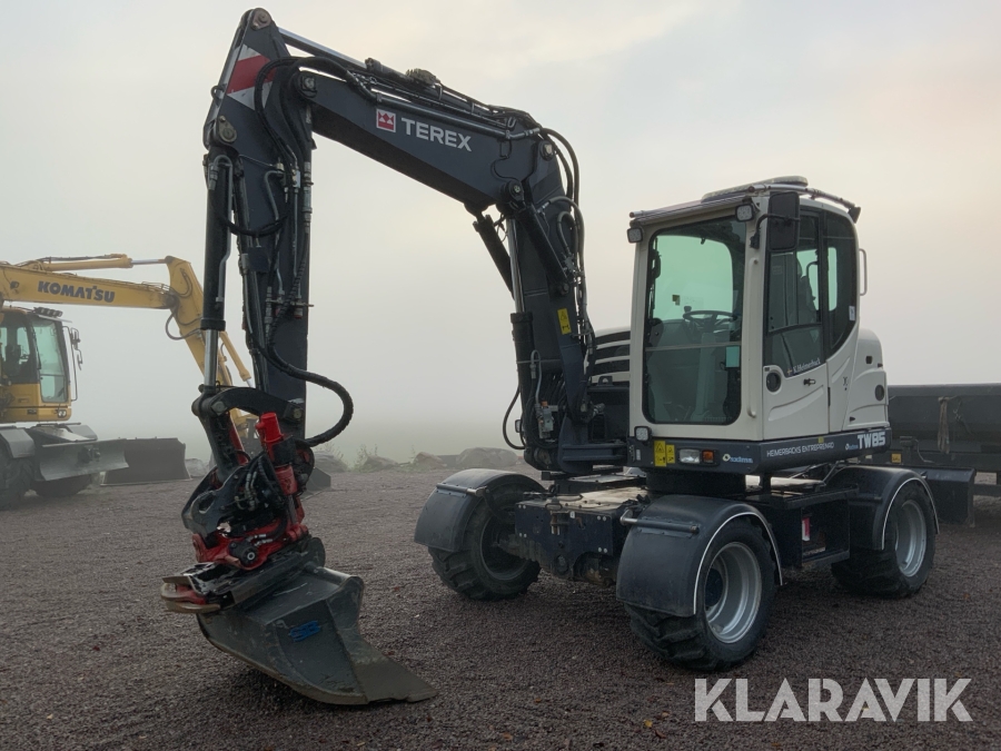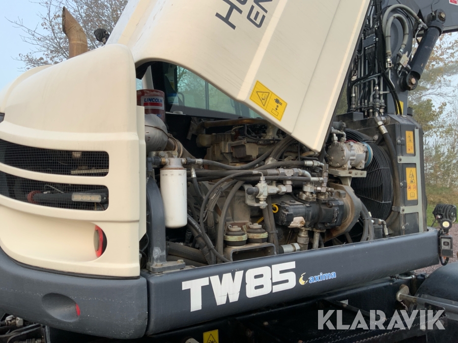 Grävmaskin Terex TW85 med kärra och flera redskap