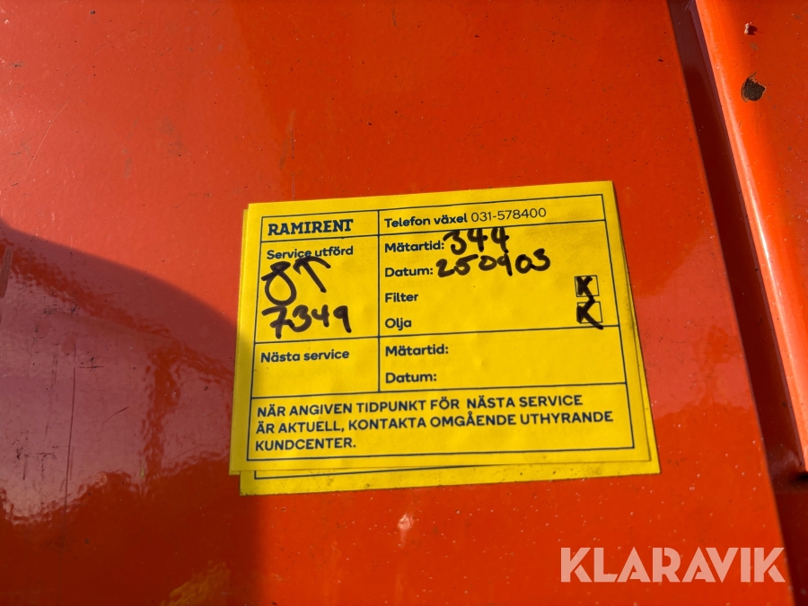 Pga platsbrist är det viktigt att du som köpare hämtar inom 12 dagar från auktionsavslut. Vid frågor om frakt kontakta trade@ramirent.se.