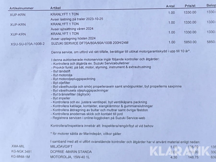 Du som köpare är skyldig att kontrollera objektet vid hämtning. Skiljer sig något avsevärt jämfört med informationen på klaravik.se? Kontakta då Klaravik innan du tar objektet från platsen. Läs fullständiga köpvillkor.