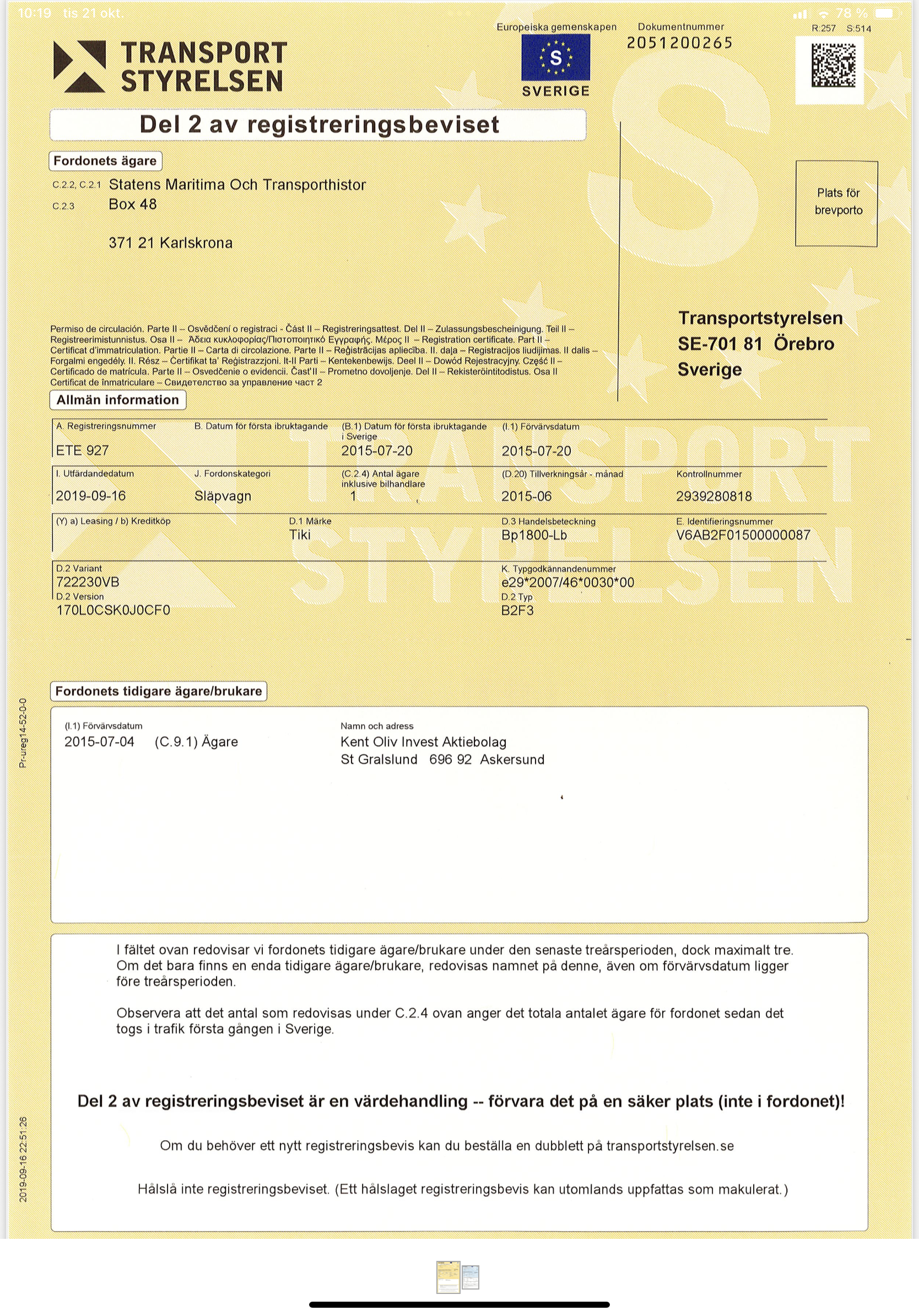 • Serie/chassinummer framgår