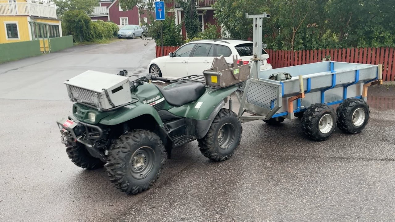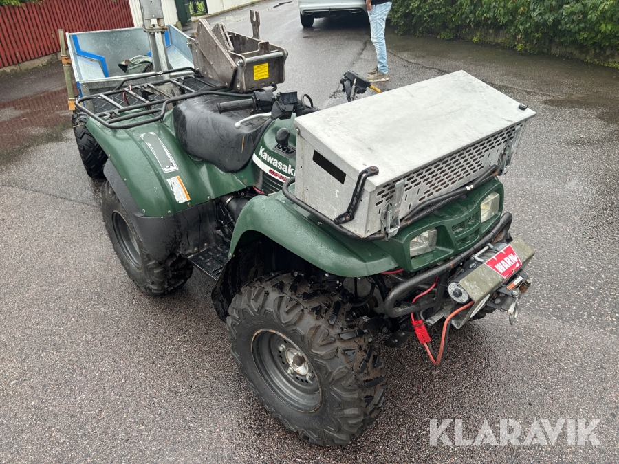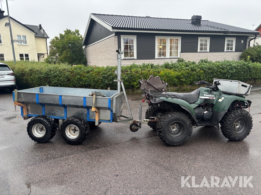 ATV Kawasaki KVF360 med skogsvagn