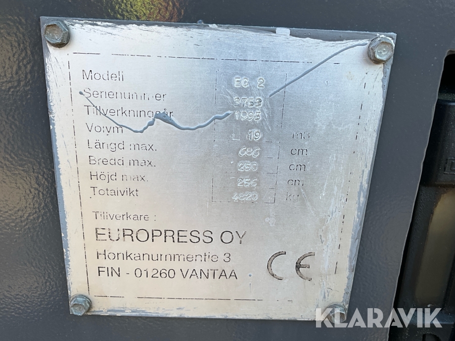 Boka frakt? Det finns ingen specifik information om frakt för just det här objektet, men om du skickar oss en förfrågan via vårt fraktformulär, så undersöker vi möjligheten. Paket, EU-pall eller större maskin? Klaravik har fraktavtal med Schenker och i de fall vi kan hjälpa till med frakt gäller det objekt som ryms i paket eller inom en EU-pall (upp till 120*80 cm och 990 kg). Det går att beställa frakt inom Sverige, dock inte till utlandet. Vid frakt på större maskiner rekommenderar vi gärna transportföretag som du kan kontakta.