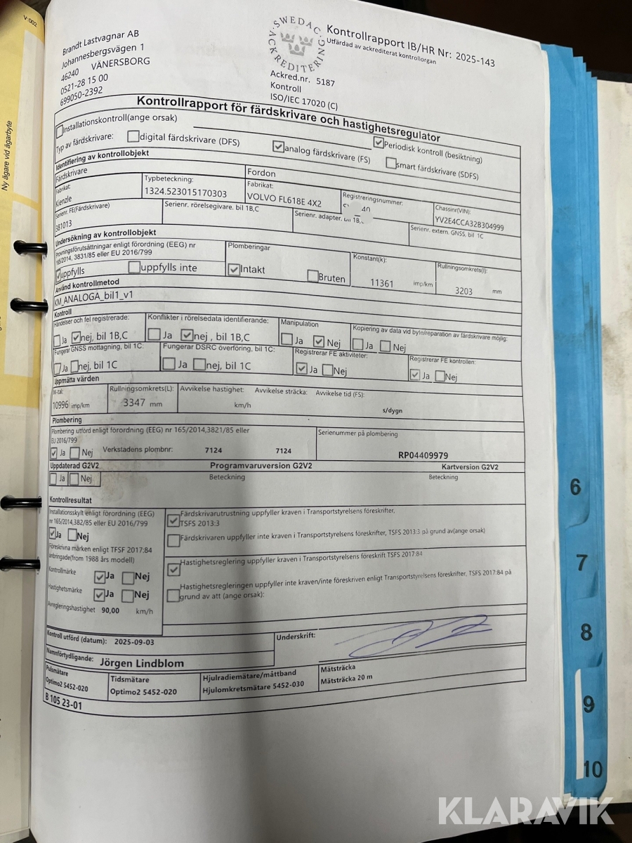 Färdskrivare är besiktigad 2025-09