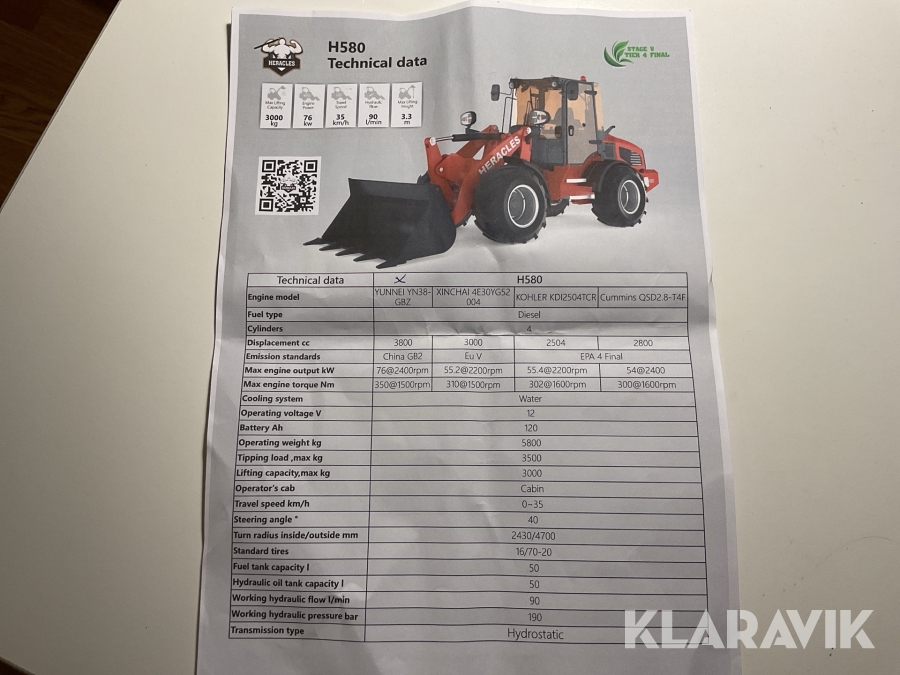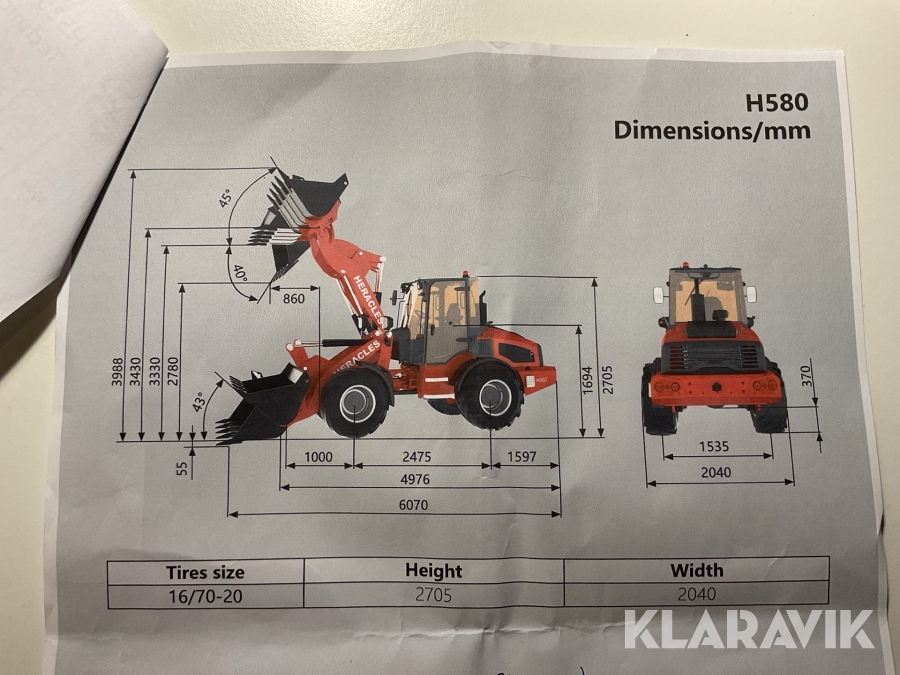 Hjullastare Heracles H580 med redskap