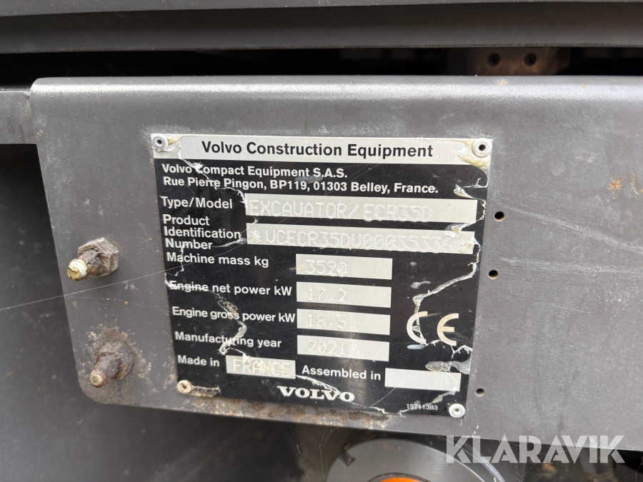 Bandgrävare Volvo ECR35D med tiltrotator och 4 st verktyg