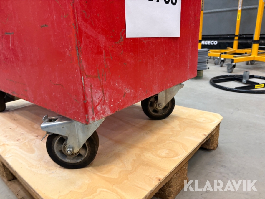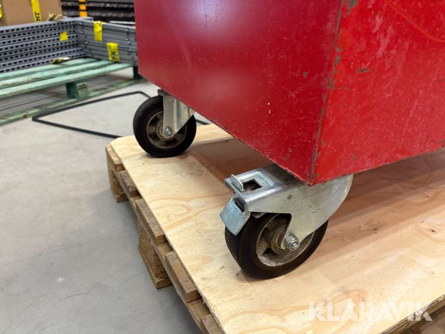 Verktygskistans två bastanta handtag och fyra länkhjul gör den enkel att manövrera.