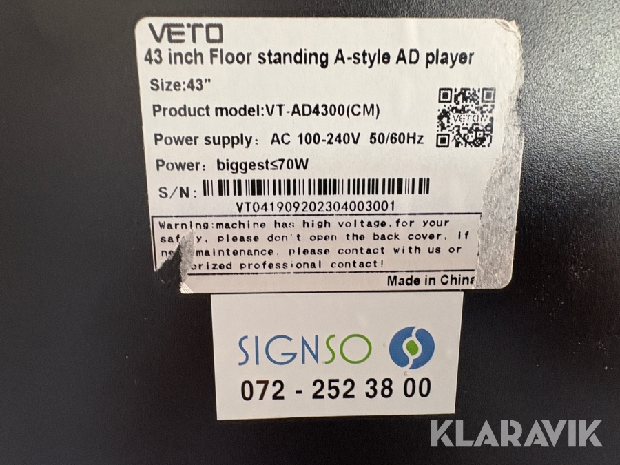 Digital kioskmodell Veto 43 inch floor standing A-style AD player