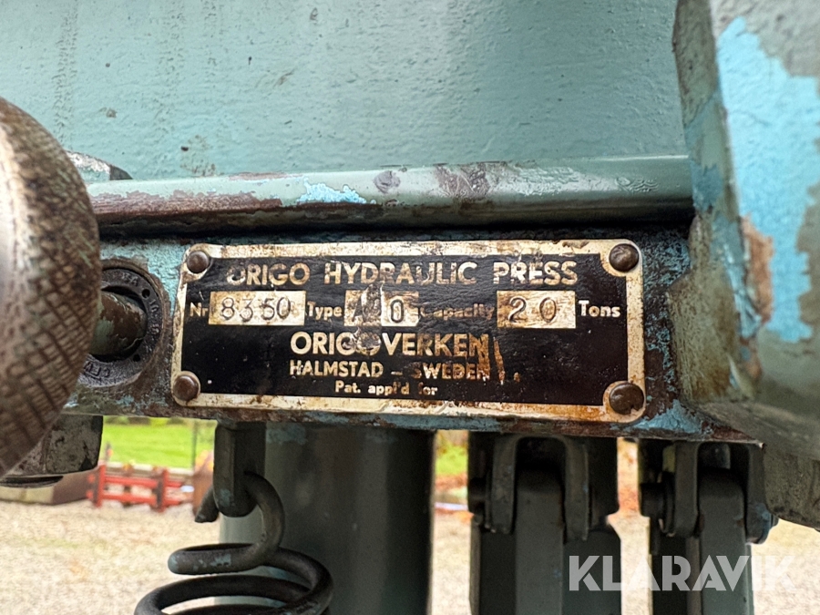 Hydraulisk press Origo Verken 20 ton med tillhörande verktyg