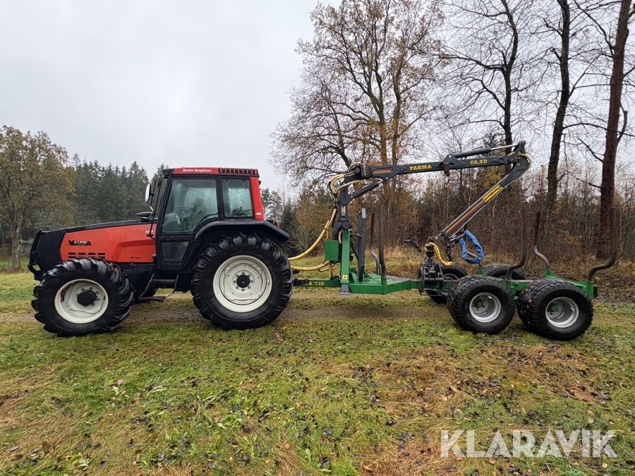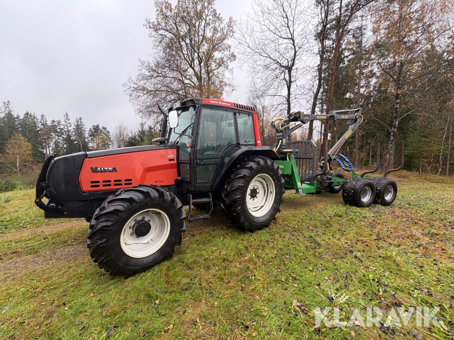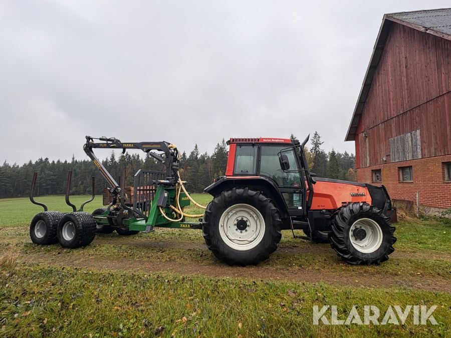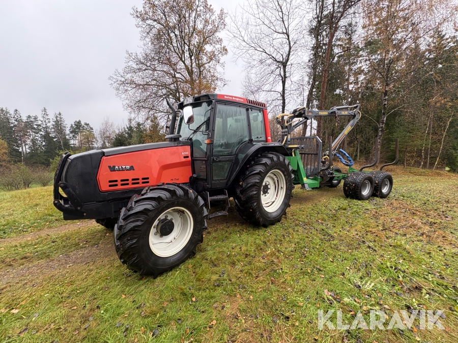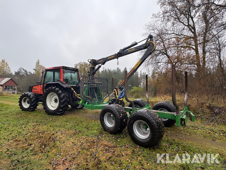 Traktor Valtra 6200 Hi-Trol med Farma T10 skogsvagn