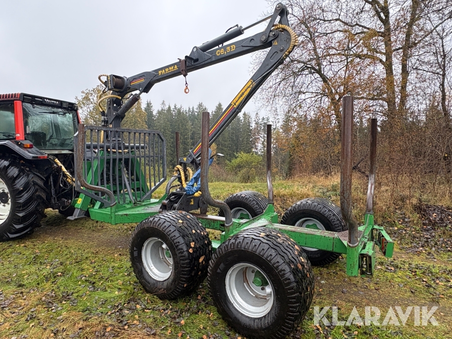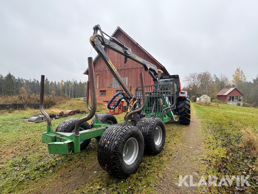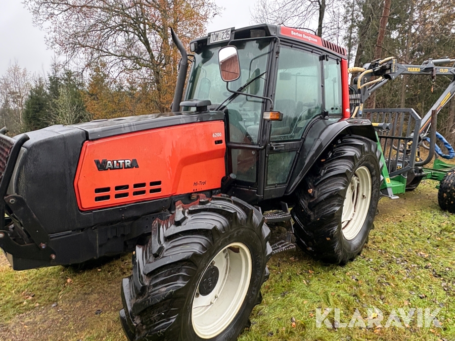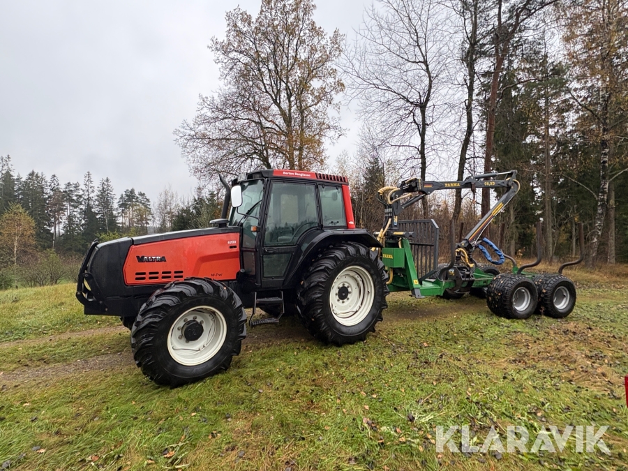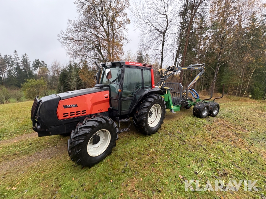Traktor Valtra 6200 Hi-Trol med Farma T10 skogsvagn