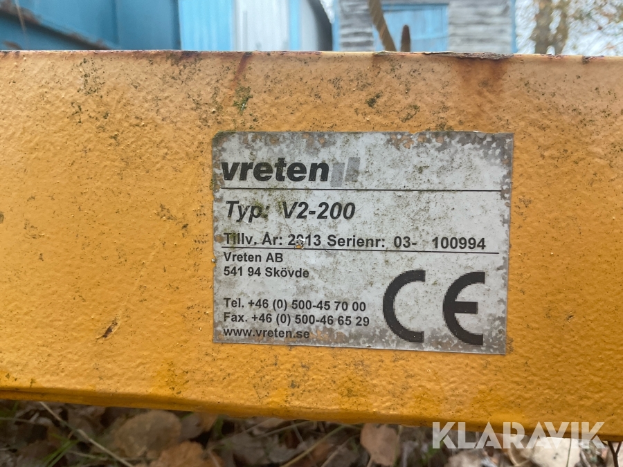 Dragen väghyvel/vägsladd Vreten V2-200 Trepunktsfäste