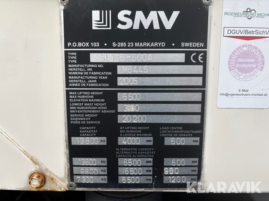 Boka frakt? Det finns ingen specifik information om frakt för just det här objektet, men om du skickar oss en förfrågan via vårt fraktformulär, så undersöker vi möjligheten. Paket, EU-pall eller större maskin? Klaravik har fraktavtal med Schenker och i de fall vi kan hjälpa till med frakt gäller det objekt som ryms i paket eller inom en EU-pall (upp till 120*80 cm och 990 kg). Det går att beställa frakt inom Sverige, dock inte till utlandet. Vid frakt på större maskiner rekommenderar vi gärna transportföretag som du kan kontakta.
