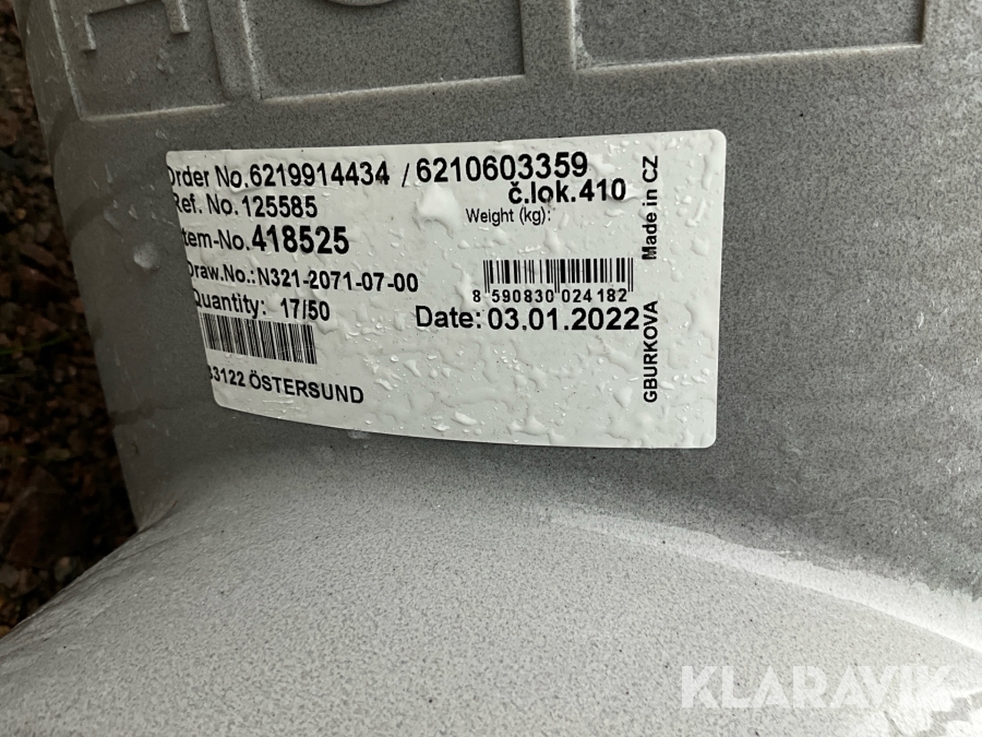 Boka frakt? Det finns ingen specifik information om frakt för just det här objektet, men om du skickar oss en förfrågan via vårt fraktformulär, så undersöker vi möjligheten. Paket, EU-pall eller större maskin? Klaravik har fraktavtal med Schenker och i de fall vi kan hjälpa till med frakt gäller det objekt som ryms i paket eller inom en EU-pall (upp till 120*80 cm och 990 kg). Det går att beställa frakt inom Sverige, dock inte till utlandet. Vid frakt på större maskiner rekommenderar vi gärna transportföretag som du kan kontakta.
