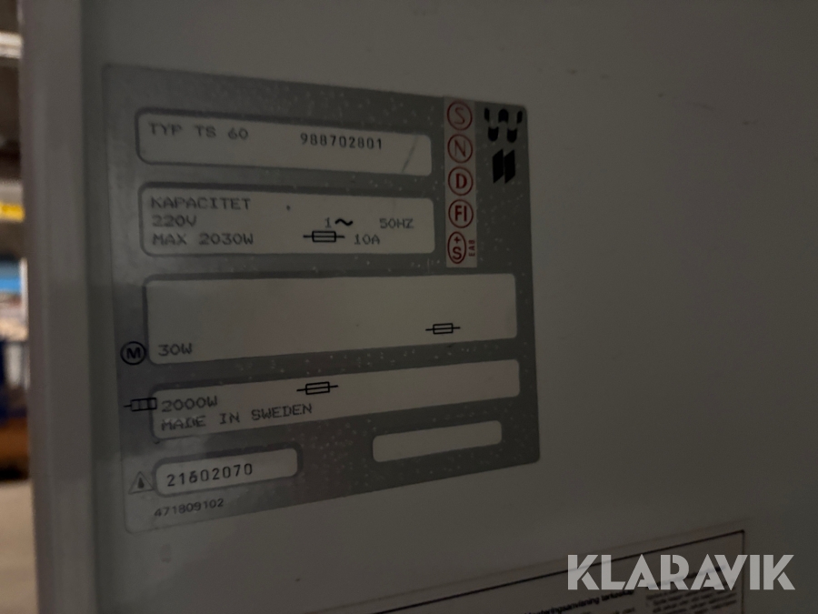 Boka frakt? Det finns ingen specifik information om frakt för just det här objektet, men om du skickar oss en förfrågan via vårt fraktformulär, så undersöker vi möjligheten. Paket, EU-pall eller större maskin? Klaravik har fraktavtal med Schenker och i de fall vi kan hjälpa till med frakt gäller det objekt som ryms i paket eller inom en EU-pall (upp till 120*80 cm och 990 kg). Det går att beställa frakt inom Sverige, dock inte till utlandet. Vid frakt på större maskiner rekommenderar vi gärna transportföretag som du kan kontakta.