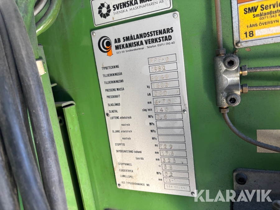 Excenterpress Smålandsstenar mekaniska verkstad FPF2