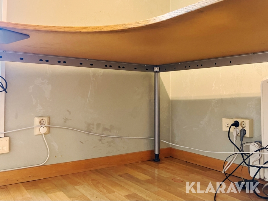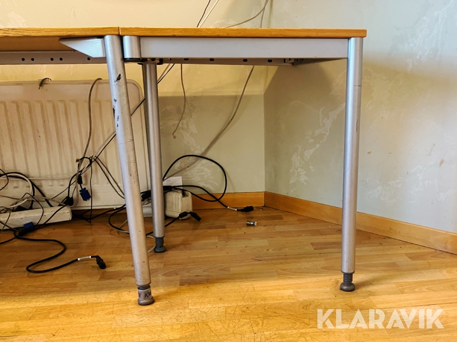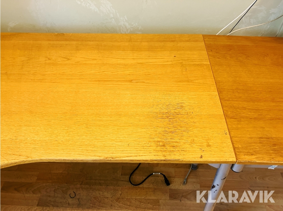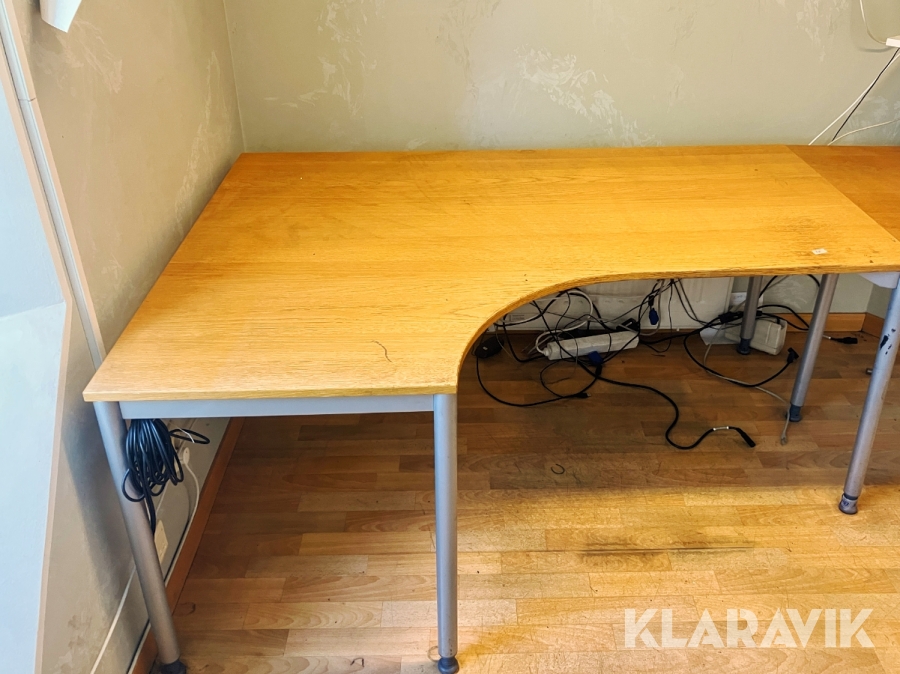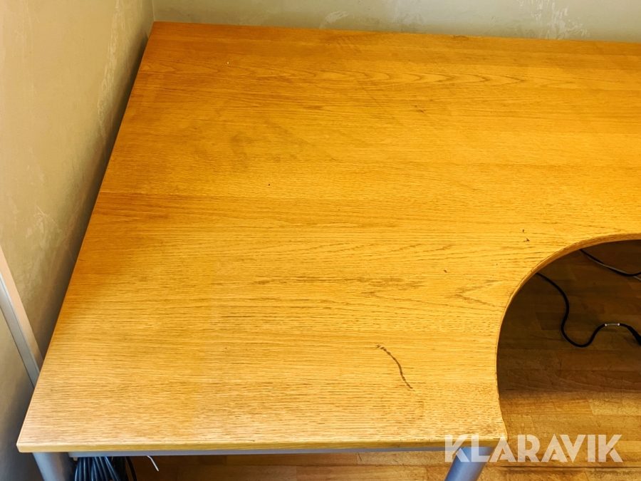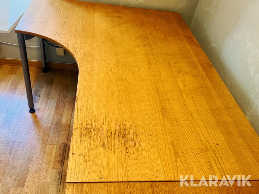 Hörnskrivbord i trä och ben i stål
