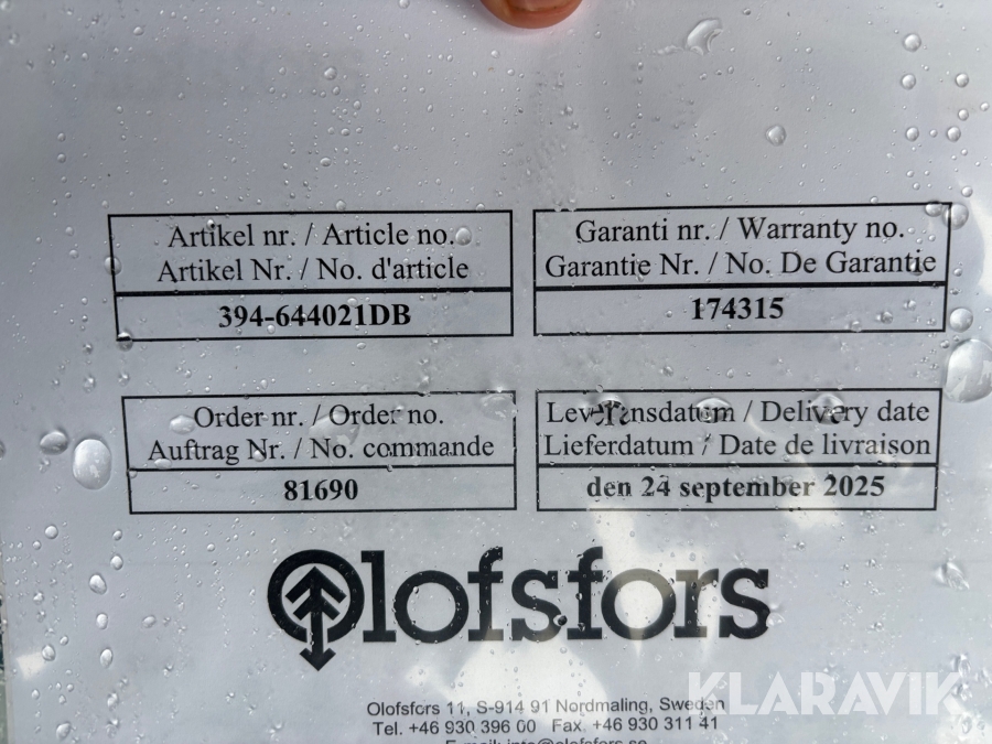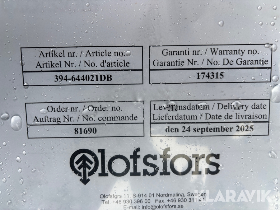 Boka frakt? Det finns ingen specifik information om frakt för just det här objektet, men om du skickar oss en förfrågan via vårt fraktformulär, så undersöker vi möjligheten. Paket, EU-pall eller större maskin? Klaravik har fraktavtal med Schenker och i de fall vi kan hjälpa till med frakt gäller det objekt som ryms i paket eller inom en EU-pall (upp till 120*80 cm och 990 kg). Det går att beställa frakt inom Sverige, dock inte till utlandet. Vid frakt på större maskiner rekommenderar vi gärna transportföretag som du kan kontakta.