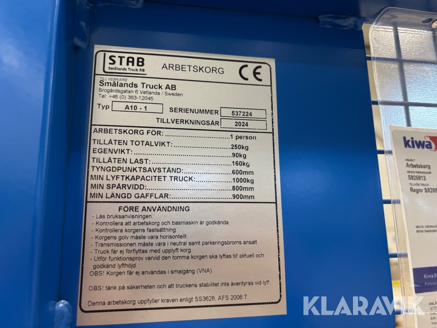 Personkorg / arbetskorg för truck Smålands Truck A10-1