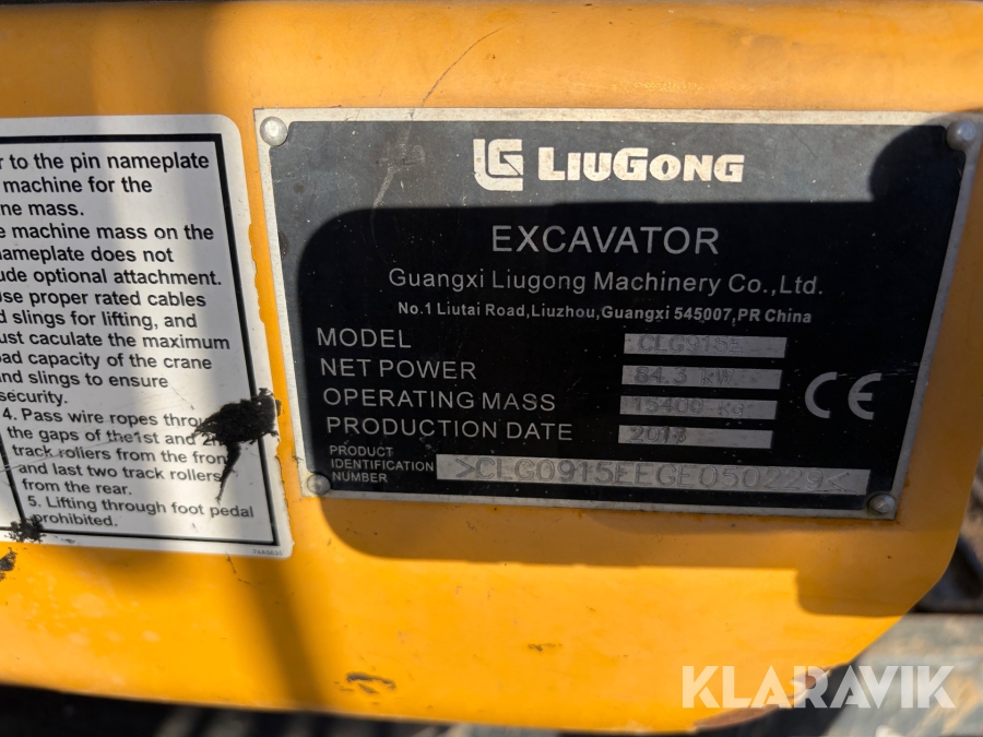 Grävmaskin Liugong CGL915E