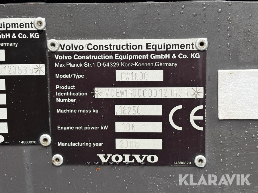 Grävmaskin Volvo EW160C