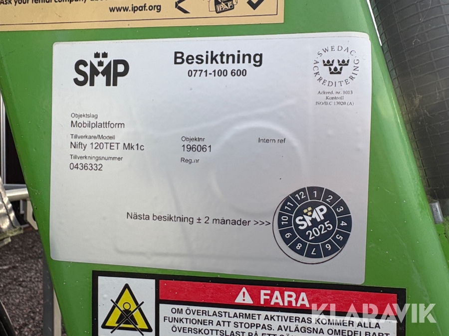 Boka frakt? Det finns ingen specifik information om frakt för just det här objektet, men om du skickar oss en förfrågan via vårt fraktformulär, så undersöker vi möjligheten. Paket, EU-pall eller större maskin? Klaravik har fraktavtal med Schenker och i de fall vi kan hjälpa till med frakt gäller det objekt som ryms i paket eller inom en EU-pall (upp till 120*80 cm och 990 kg). Det går att beställa frakt inom Sverige, dock inte till utlandet. Vid frakt på större maskiner rekommenderar vi gärna transportföretag som du kan kontakta.