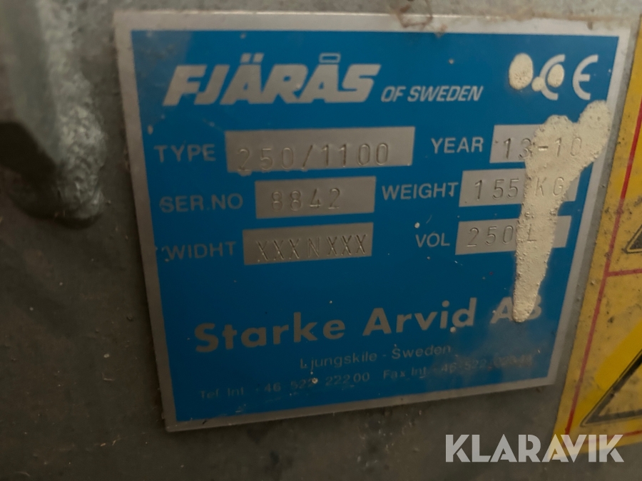 Boka frakt? Det finns ingen specifik information om frakt för just det här objektet, men om du skickar oss en förfrågan via vårt fraktformulär, så undersöker vi möjligheten. Paket, EU-pall eller större maskin? Klaravik har fraktavtal med Schenker och i de fall vi kan hjälpa till med frakt gäller det objekt som ryms i paket eller inom en EU-pall (upp till 120*80 cm och 990 kg). Det går att beställa frakt inom Sverige, dock inte till utlandet. Vid frakt på större maskiner rekommenderar vi gärna transportföretag som du kan kontakta.