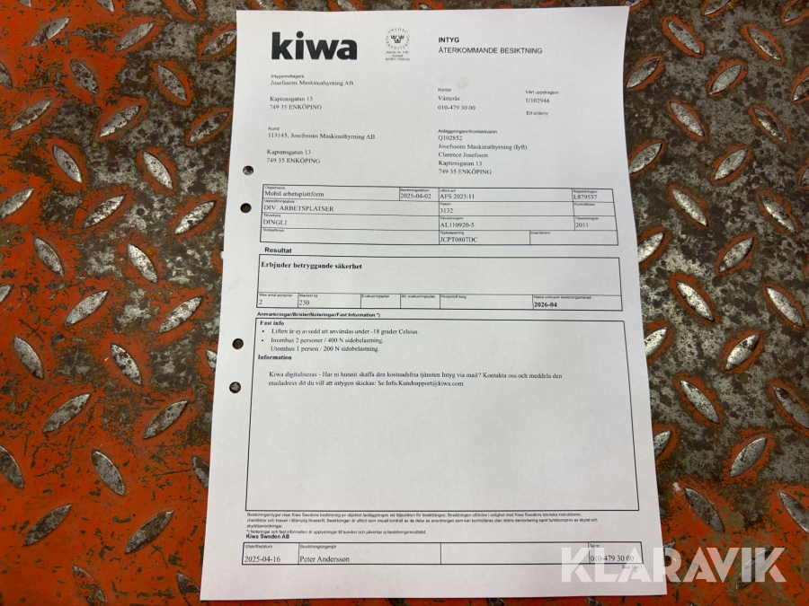 Du som köpare är skyldig att kontrollera objektet vid hämtning. Skiljer sig något avsevärt jämfört med informationen på klaravik.se? Kontakta då Klaravik innan du tar objektet från platsen. Läs fullständiga köpvillkor.