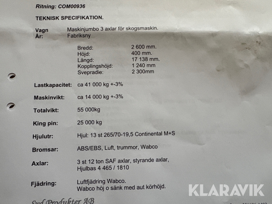 Boka frakt? Det finns ingen specifik information om frakt för just det här objektet, men om du skickar oss en förfrågan via vårt fraktformulär, så undersöker vi möjligheten. Paket, EU-pall eller större maskin? Klaravik har fraktavtal med Schenker och i de fall vi kan hjälpa till med frakt gäller det objekt som ryms i paket eller inom en EU-pall (upp till 120*80 cm och 990 kg). Det går att beställa frakt inom Sverige, dock inte till utlandet. Vid frakt på större maskiner rekommenderar vi gärna transportföretag som du kan kontakta.