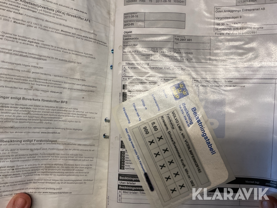 • Serie/chassinummer framgår