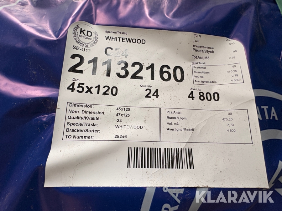 Träreglar Karl Hedin AB 4800x120 99st