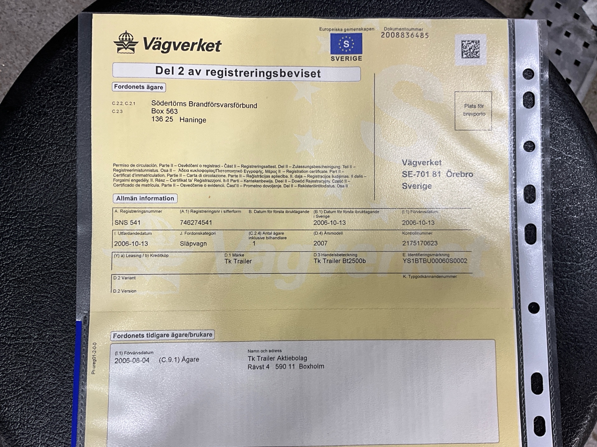 • Serie/chassinummer framgår