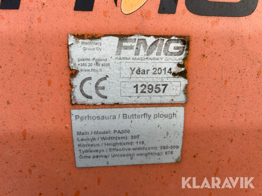 Snöplog FMG PA300 3-punkt