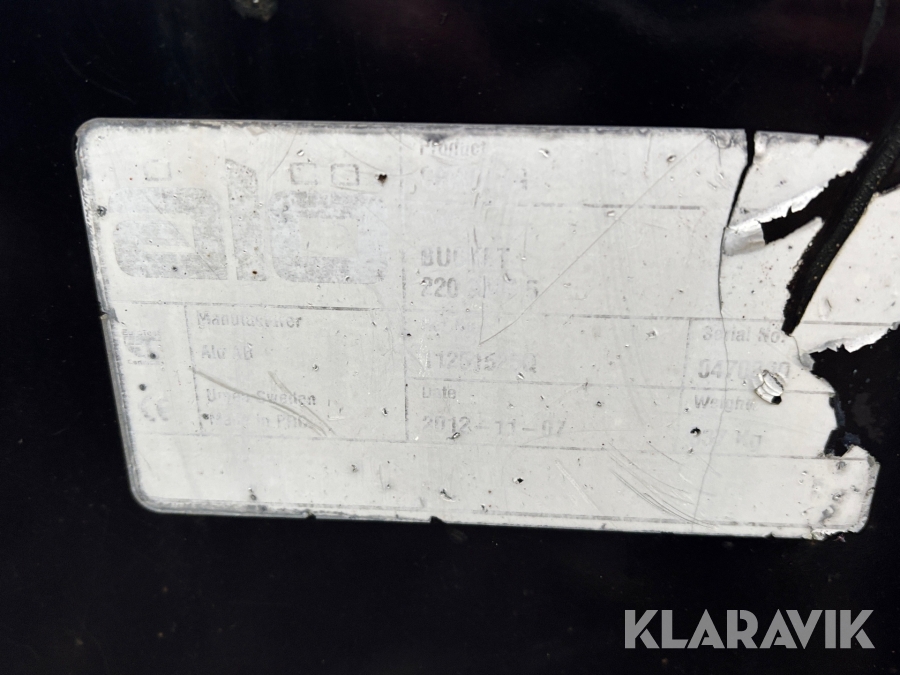 Boka frakt? Det finns ingen specifik information om frakt för just det här objektet, men om du skickar oss en förfrågan via vårt fraktformulär, så undersöker vi möjligheten. Paket, EU-pall eller större maskin? Klaravik har fraktavtal med Schenker och i de fall vi kan hjälpa till med frakt gäller det objekt som ryms i paket eller inom en EU-pall (upp till 120*80 cm och 990 kg). Det går att beställa frakt inom Sverige, dock inte till utlandet. Vid frakt på större maskiner rekommenderar vi gärna transportföretag som du kan kontakta.