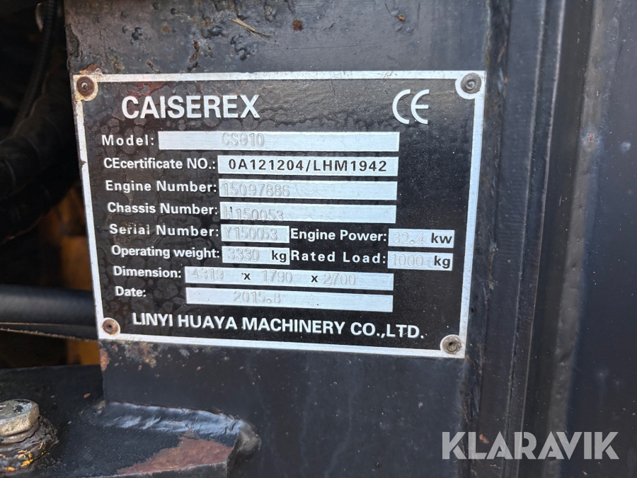 Hjullastare Caiserex CS910 med Vikplog och Sandspridare
