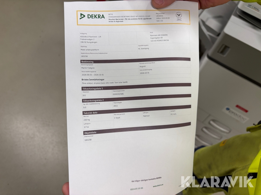 Du som köpare är skyldig att kontrollera objektet vid hämtning. Skiljer sig något avsevärt jämfört med informationen på klaravik.se? Kontakta då Klaravik innan du tar objektet från platsen. Läs fullständiga köpvillkor.