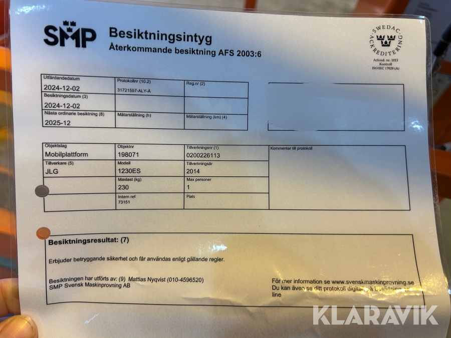Du som köpare är skyldig att kontrollera objektet vid hämtning. Skiljer sig något avsevärt jämfört med informationen på klaravik.se? Kontakta då Klaravik innan du tar objektet från platsen. Läs fullständiga köpvillkor.