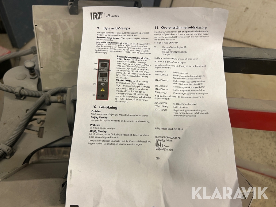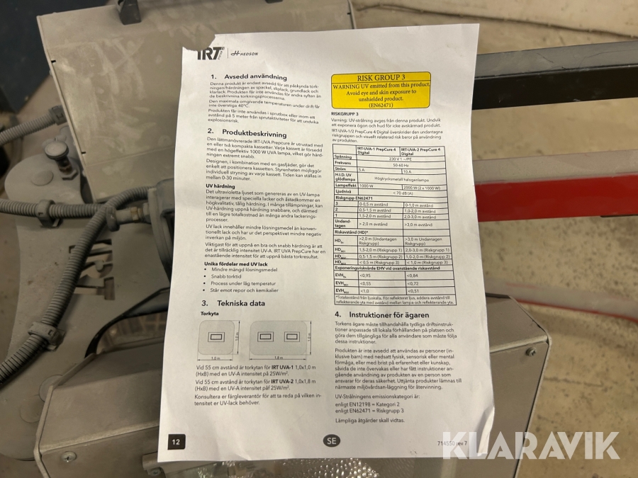 Boka frakt? Det finns ingen specifik information om frakt för just det här objektet, men om du skickar oss en förfrågan via vårt fraktformulär, så undersöker vi möjligheten. Paket, EU-pall eller större maskin? Klaravik har fraktavtal med Schenker och i de fall vi kan hjälpa till med frakt gäller det objekt som ryms i paket eller inom en EU-pall (upp till 120*80 cm och 990 kg). Det går att beställa frakt inom Sverige, dock inte till utlandet. Vid frakt på större maskiner rekommenderar vi gärna transportföretag som du kan kontakta.