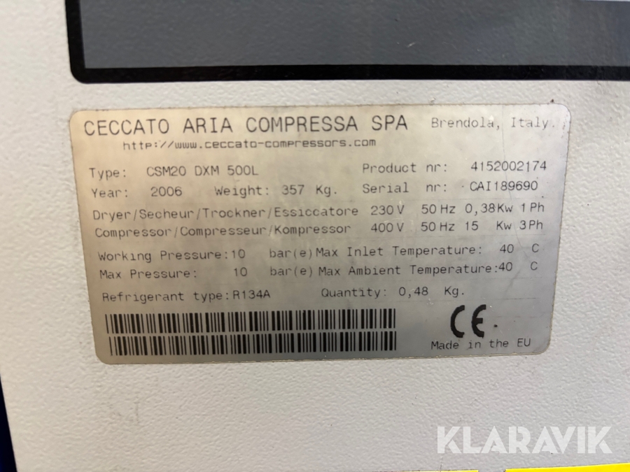 Skruvkompressor Ceccato CSM 20 DX Maxi med kyltork