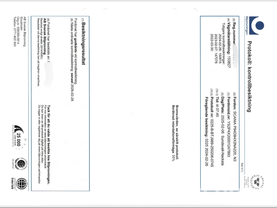 • Serie/chassinummer framgår