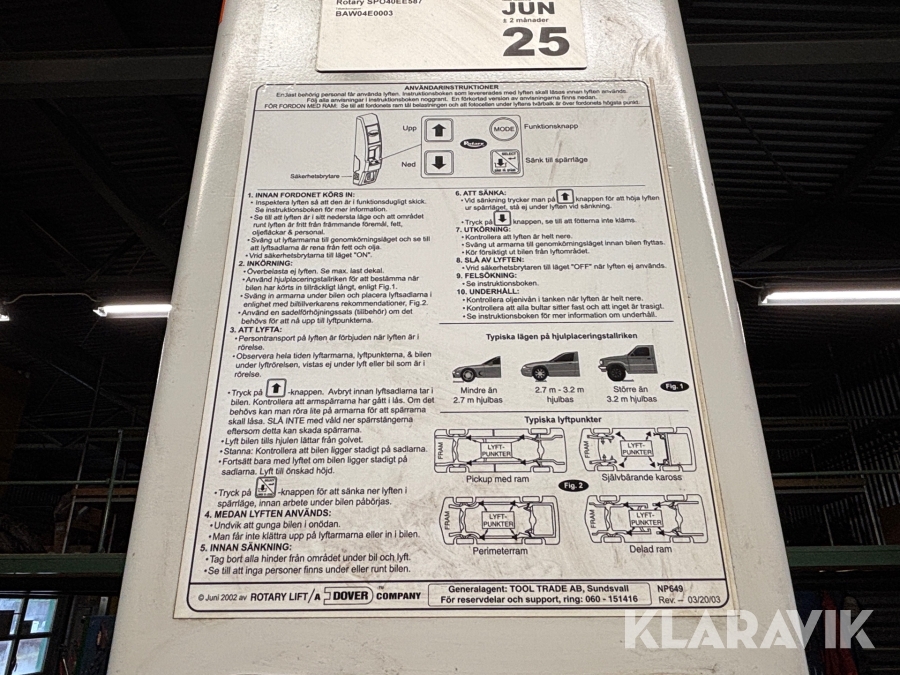 Boka frakt? Det finns ingen specifik information om frakt för just det här objektet, men om du skickar oss en förfrågan via vårt fraktformulär, så undersöker vi möjligheten. Paket, EU-pall eller större maskin? Klaravik har fraktavtal med Schenker och i de fall vi kan hjälpa till med frakt gäller det objekt som ryms i paket eller inom en EU-pall (upp till 120*80 cm och 990 kg). Det går att beställa frakt inom Sverige, dock inte till utlandet. Vid frakt på större maskiner rekommenderar vi gärna transportföretag som du kan kontakta.
