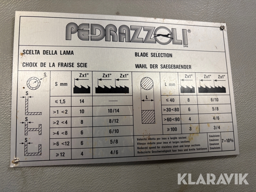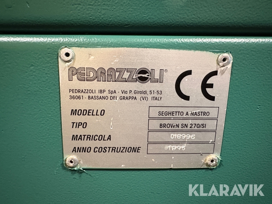 Bandsåg med gerning Pedrazzoli SN270/S