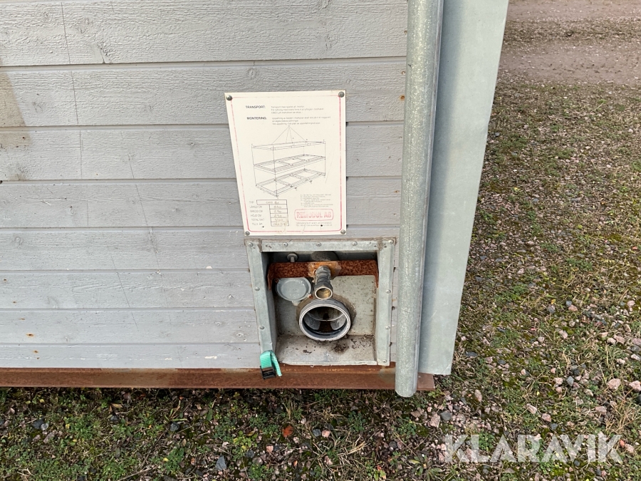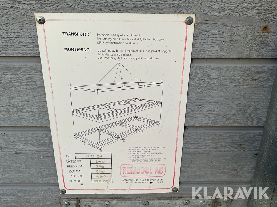For sheds and containers (10 feet and larger), loading assistance can be purchased. Payment is made either by invoice or by card at the seller's location. The cost per lift is SEK 500 + VAT.