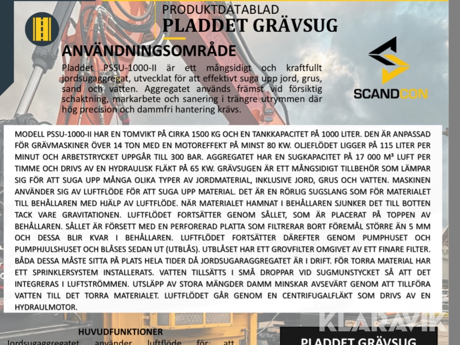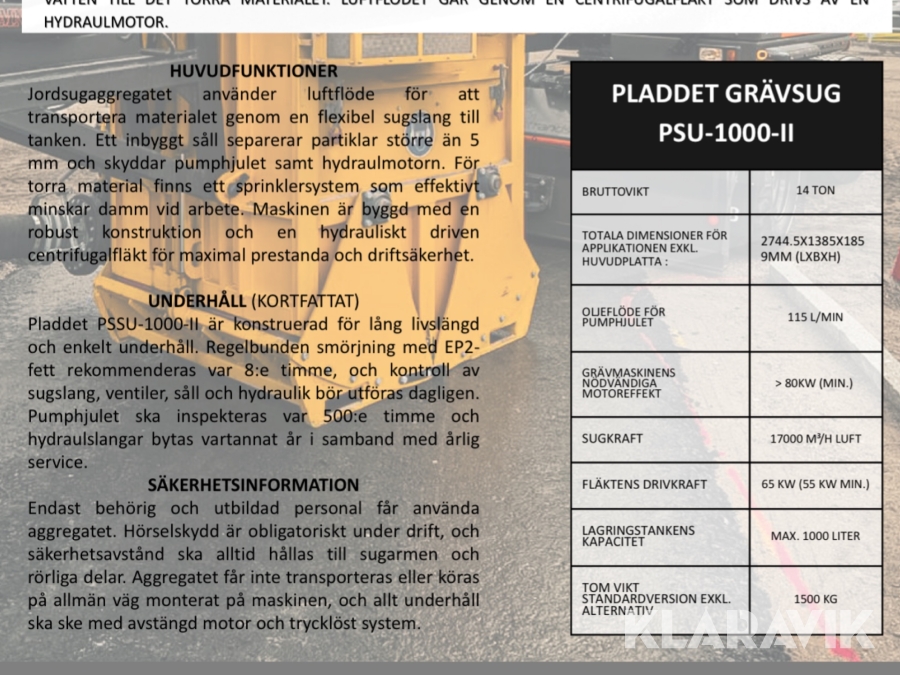 Grävsug Pladdet PSSU-1000-II
